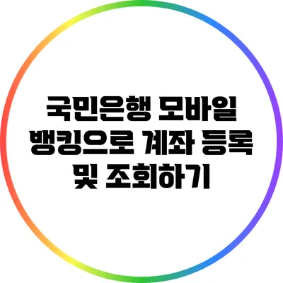 모바일 뱅킹을 통해 어떤 은행에서든 손쉽게 금융 거래를 할 수 있다는 것은 이제 더 이상 새로운 일이 아닙니다. 특히, 국민은행의 모바일 뱅킹 서비스는 다양한 기능을 알려드려 고객의 편의를 극대화하고 있어요. 이번 포스트에서는 국민은행의 모바일 뱅킹을 활용하여 계좌를 등록하고 조회하는 방법을 자세히 알아보겠습니다. 모바일 뱅킹을 이용하면 시간과 노력을 절약할 수 있는 완벽한 방법이에요!
