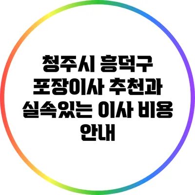 청주시 흥덕구: 포장이사 추천과 실속있는 이사 비용 안내